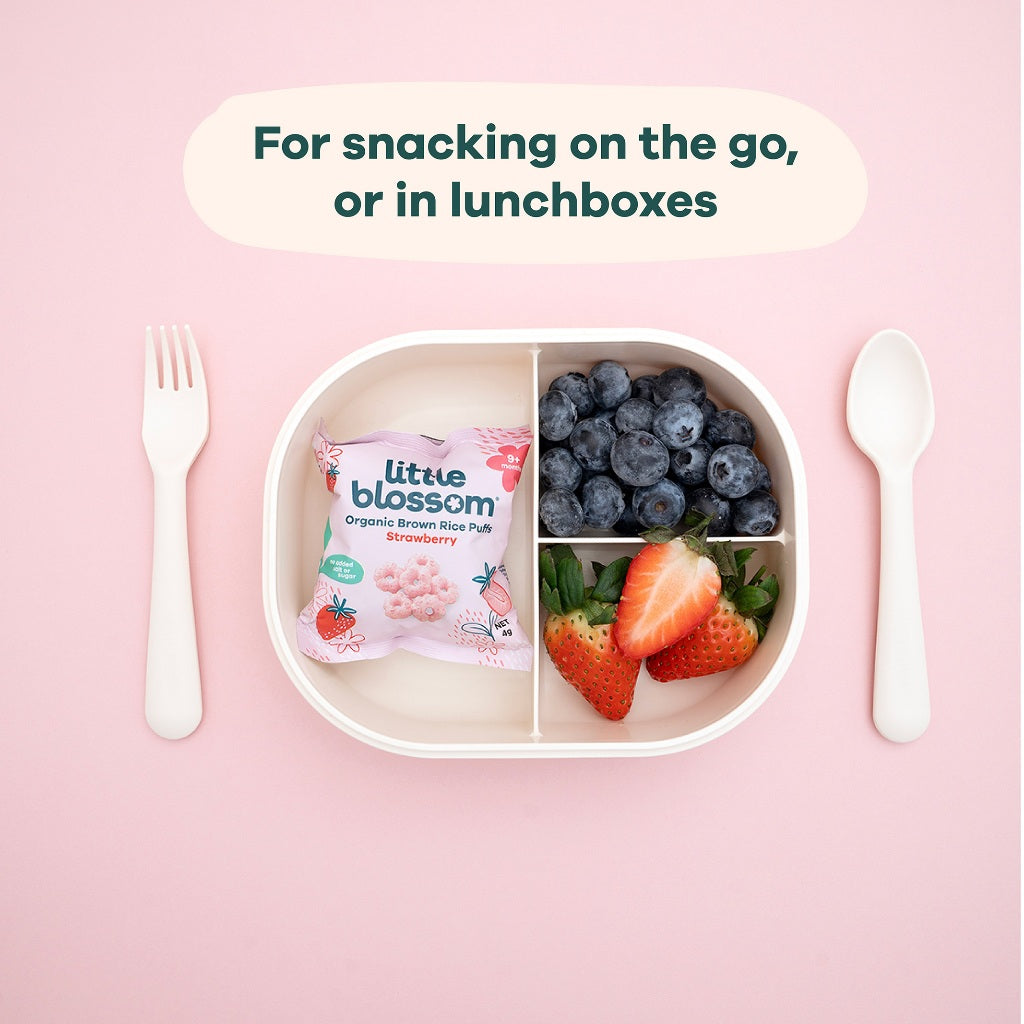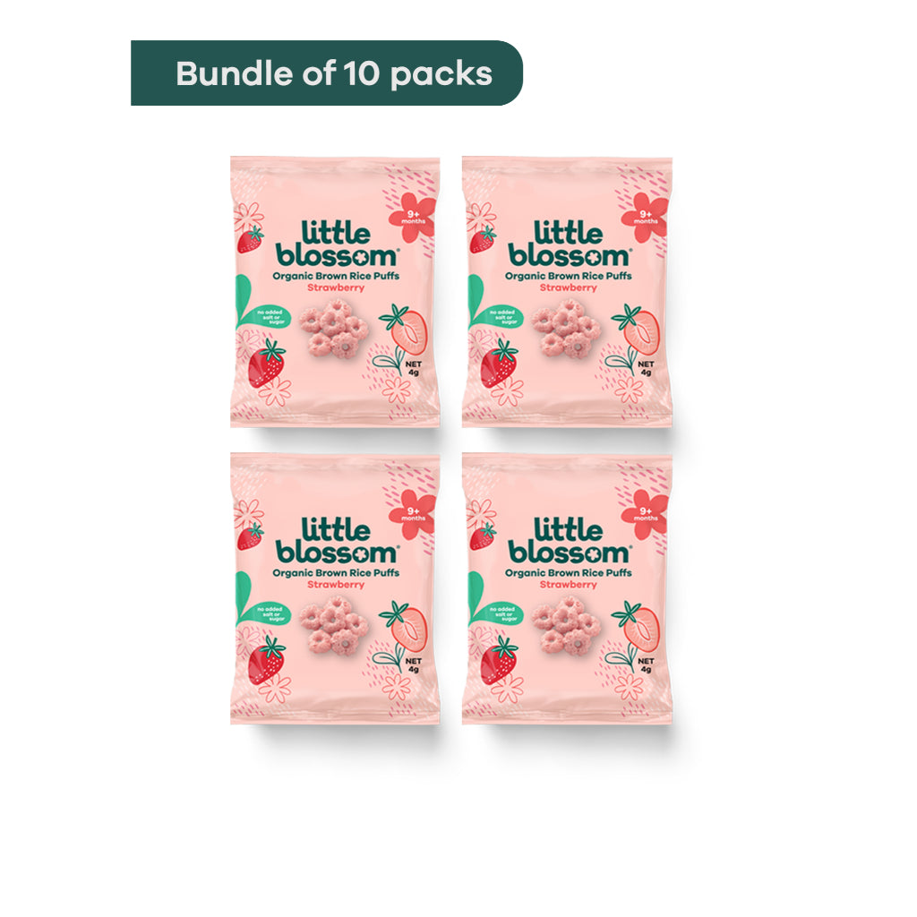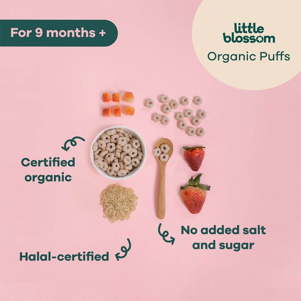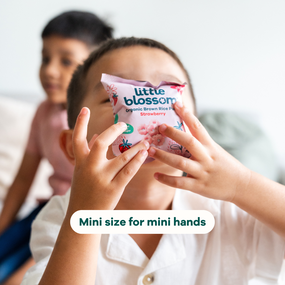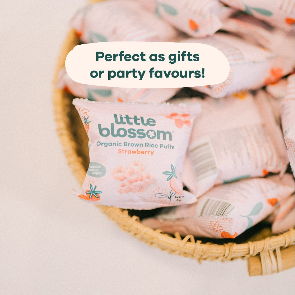 Now available in mini pack size. Little Blossom’s brown rice puffs are the perfect on the go snack for your baby! Our puffs are 100% natural. made with organic ingredients. contain no added sugar. salt or preservatives. halal certified and gluten-free.