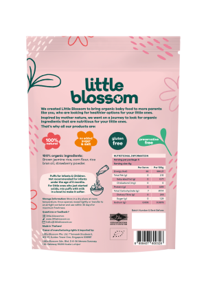 Little Blossom’s brown rice puffs are the perfect on the go snack for your baby! Our puffs are 100% natural. made with organic ingredients. contain no added sugar. salt or preservatives. halal certified and gluten-free.